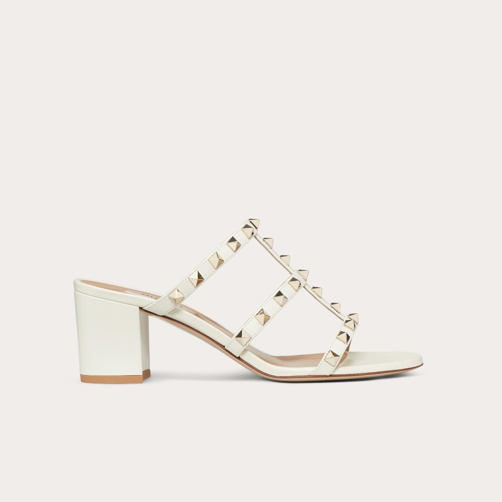 Valentino Rockstud Calfskin Leather Slide Sandal 60 mm Light Ivory