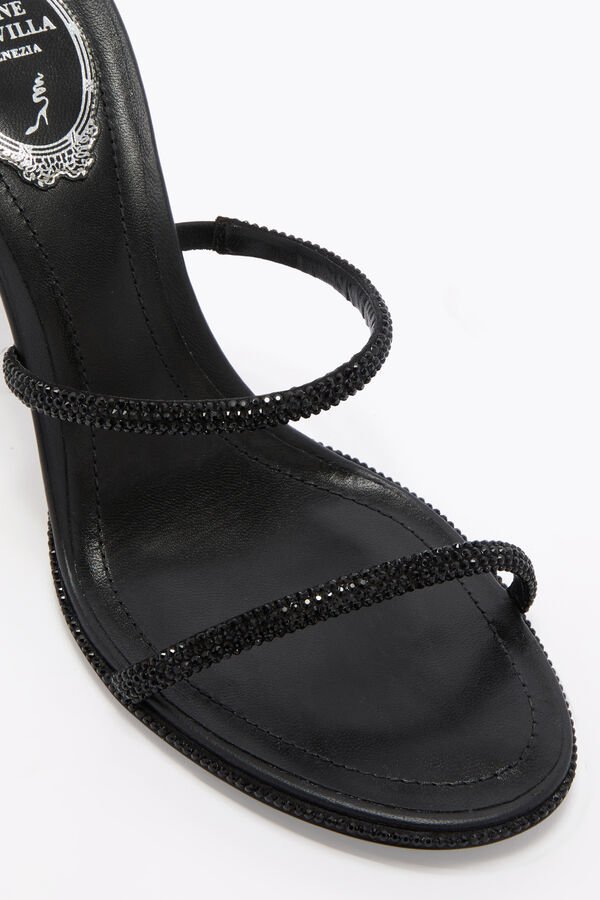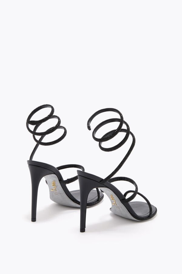 A stiletto heel, a serpent that sensually coils around the ankle, and a deep black hue illuminated by tone-on-tone crystals — the Cleo sandal is a study in understated glamour, crafted for those who embrace elegance with a singular twist.