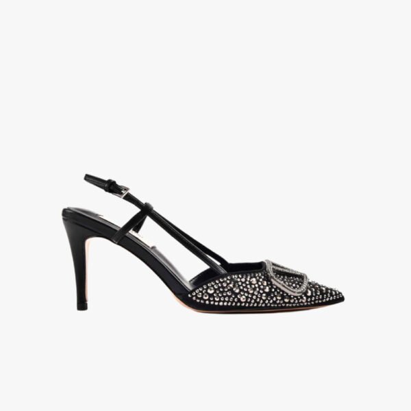 Valentino Garavani V Logo Black Crystal Embellished Heel